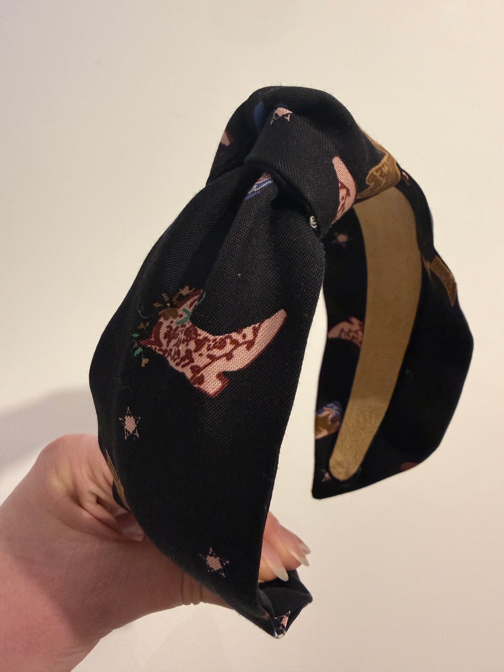 Boho Upcycled Knotted Headband – Cowboy Boot