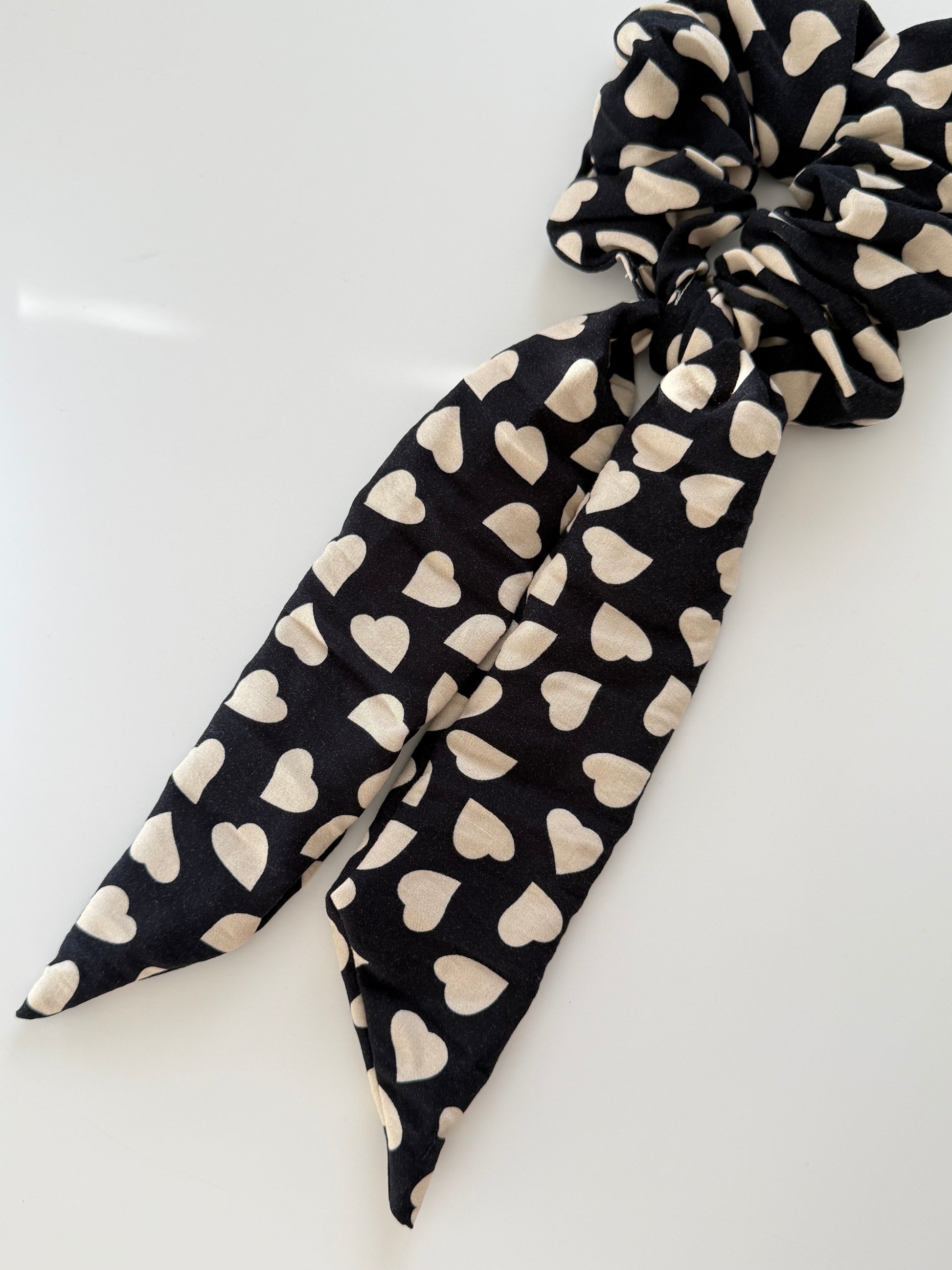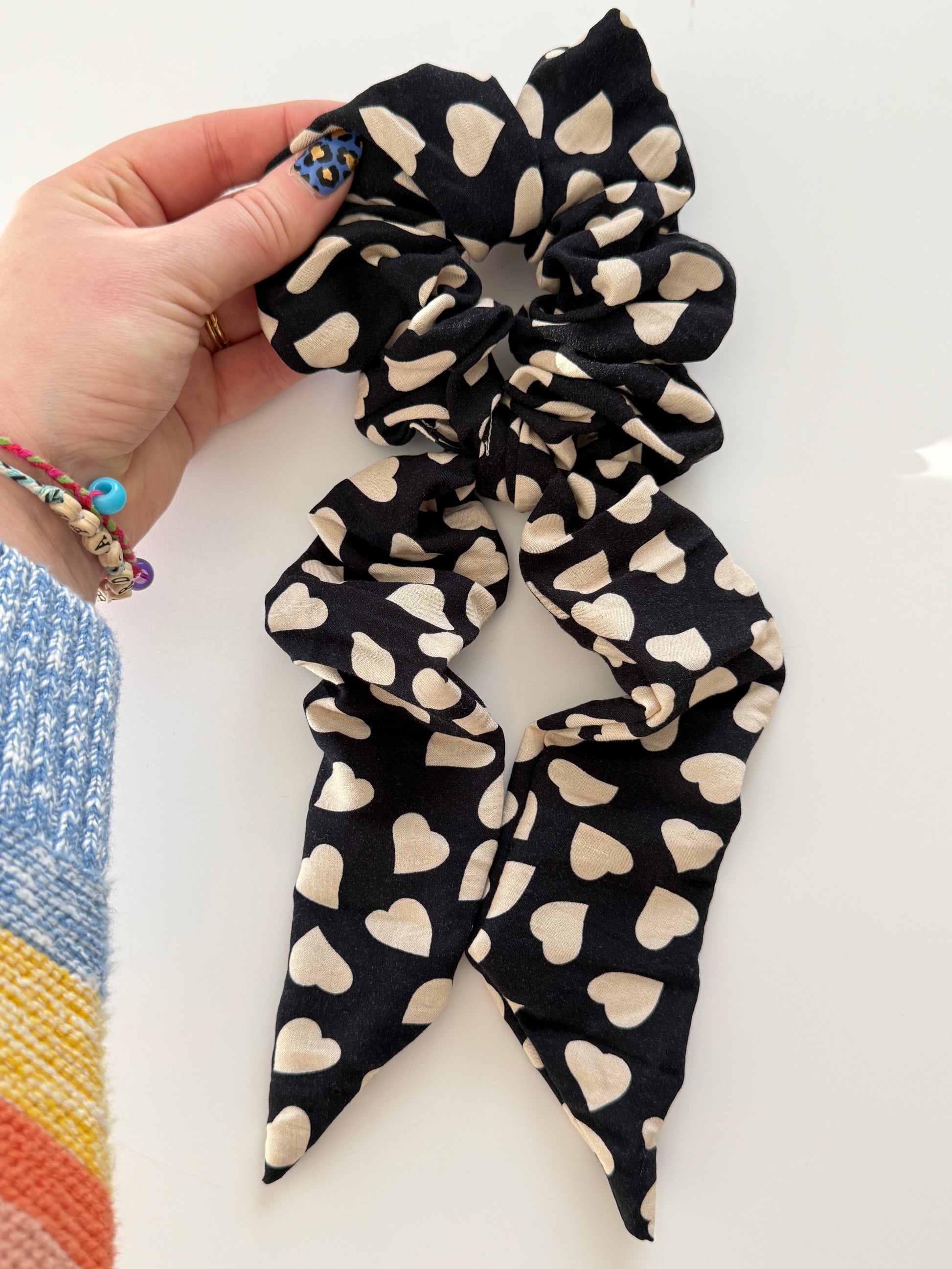 Upcycled Cream Hearts Scarf Scrunchie – Handmade & One of a Kind